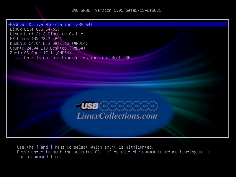 | The Most Popular collection has some of the most popular distros all on a bootable USB! This gives you a menu where you can easily select each release, and decide what best meets your wants and needs. Each option can be installed onto a hard drive from within the running selected distro. |  | | Description: | Fedora 43 Workstation DVD (x86-64), Fedora Labs Games DVD (x86_64), Linux Lite 7.6 64-bit (DVD), Linux Mint 22.2 Cinnamon DVD (AMD64), Linux Mint 22.2 Mate DVD (AMD64), Linux Mint 22.2 XFCE DVD (AMD64), MX Linux 23.6 DVD (x86-64), MX Linux 23.6 KDE DVD (x86-64), MX Linux 23.6 Fluxbox DVD (x86-64), Kubuntu 25.10 Desktop USB (AMD64), Ubuntu MATE 25.10 DVD (AMD64), Ubuntu 25.10 Desktop USB (AMD64), Zorin OS 18 Core DVD 64-bit (x86-64), all included on a bootable name-brand USB (Note: DVD ISO images on USB media, NOT actual physical DVD optical media!) | | Collection Items: | 55830 [Fedora Labs Games DVD (x86_64)] 52147 54956 54957 54958 53283 53284 53285 55912 55916 55910 52125 |